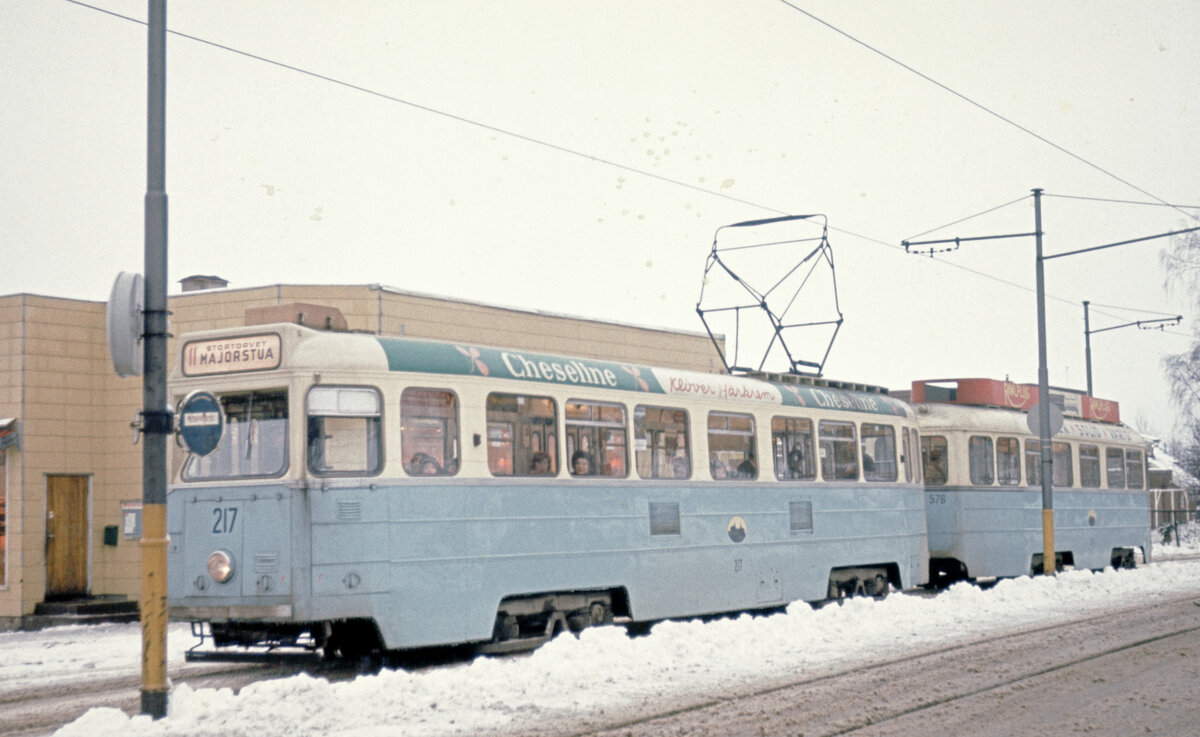 Oslo Oslo Sporveier SL 11 (Tw 217 (Høka)) Kjelsås am 23. Januar 1971. - Scan eines Diapositivs.