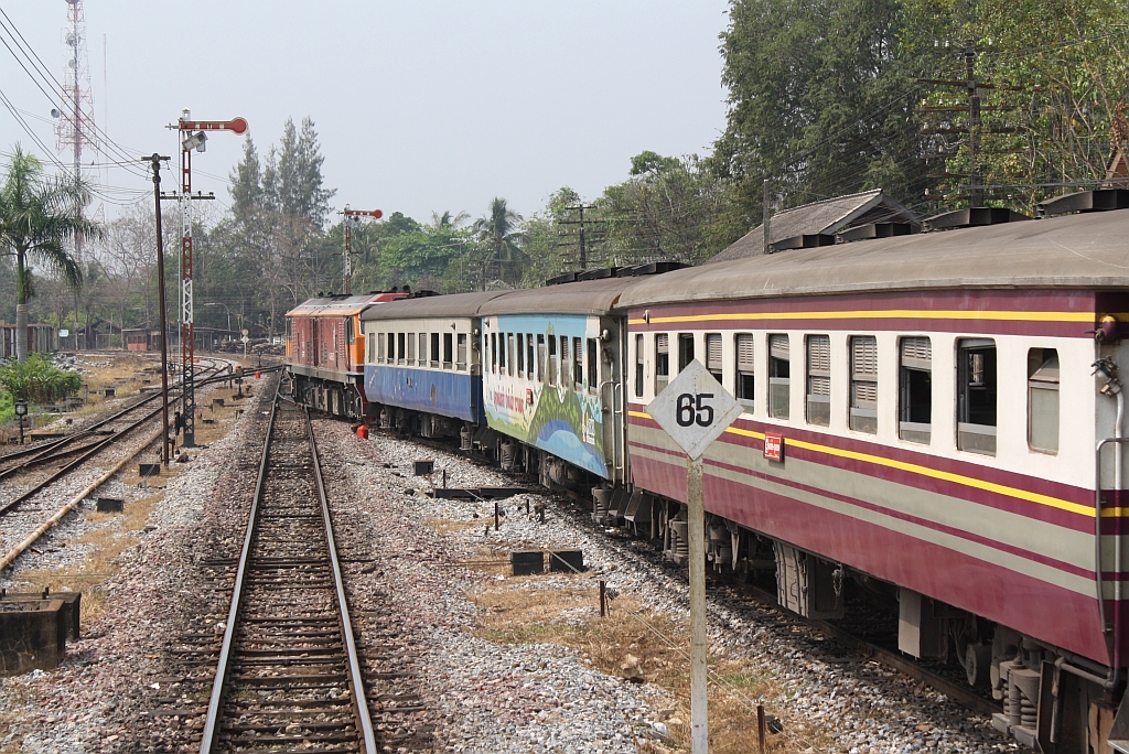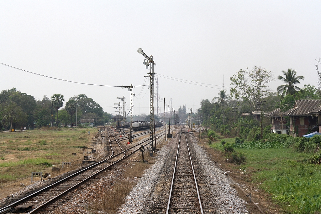 Nördliche Einfahrtsbereich des Bf. Sila At, Blickrichtung Bangkok, am 15.März 2012.