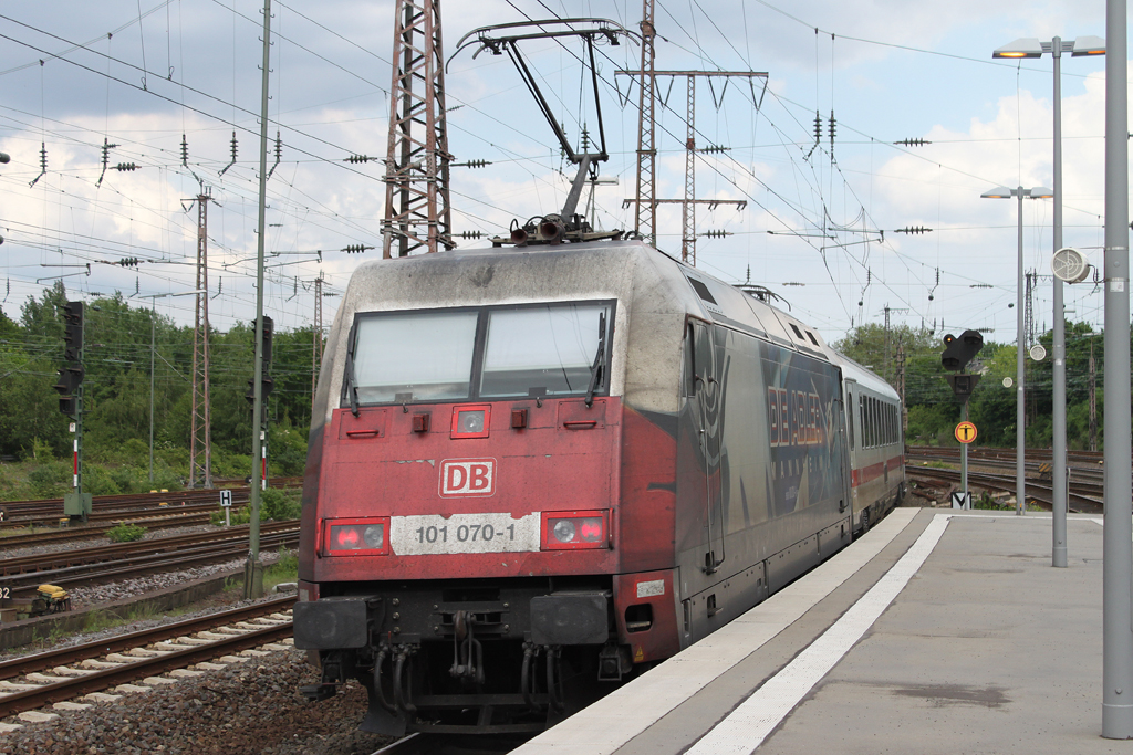 101 067-7 fuhr am 11.06.2012 mit dem IC 2332 von Norddeich Mole nach Köln, hier bei Neermoor.