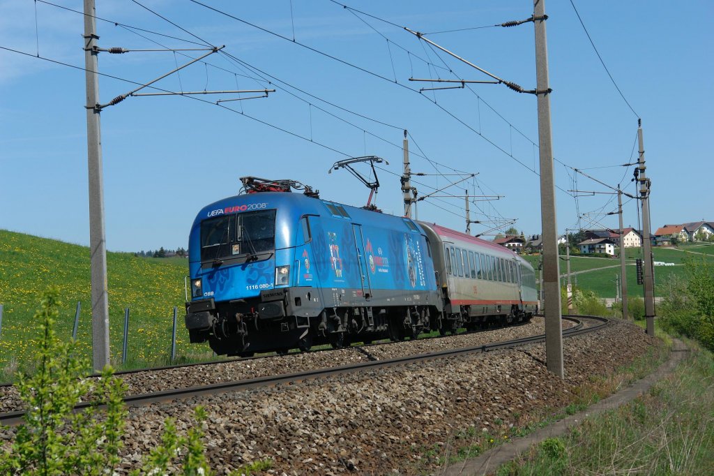 1116 080 mit OIC 690 von Wien West nach Klagenfurt Hbf am 25.04.2009 unterwegs bei Seekirchen am Wallersee.