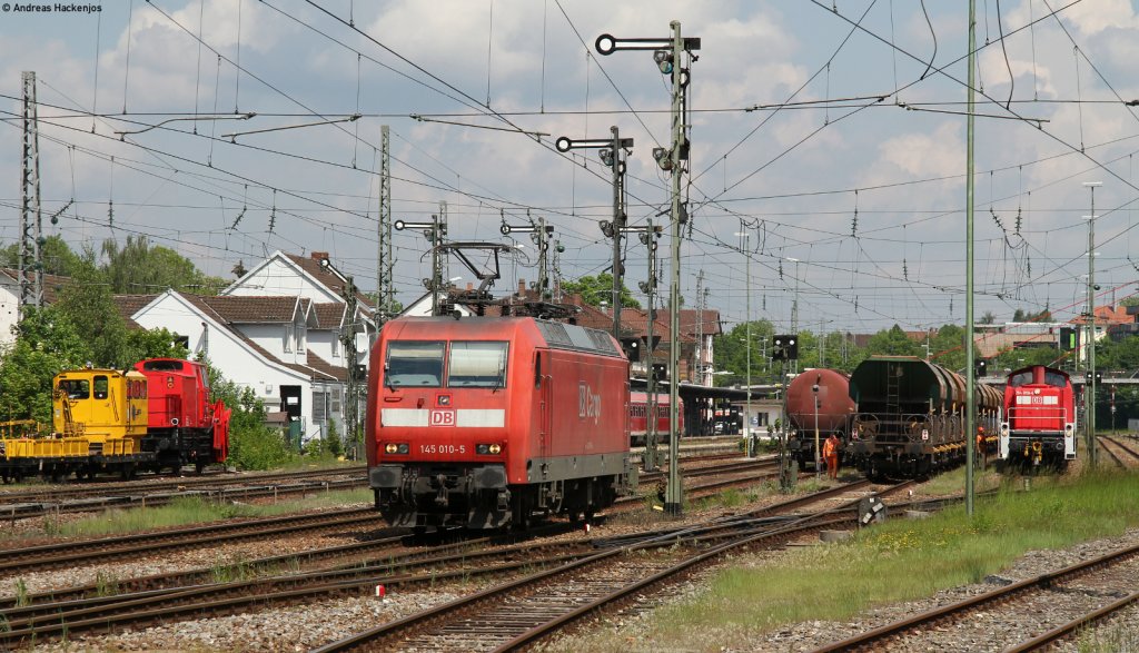 145 010-5 hat gerade den GC 61763 (Hausach-Schwenningen Rammelswiesen)nach Villingen gebracht und wird nun auf den GC 61760 übergehen. Ab Villingen übernimmt 294 858-6 den Zug 30.5.12