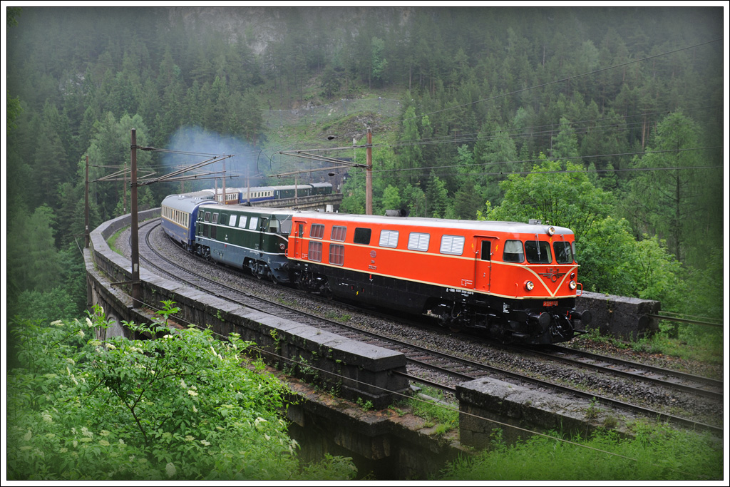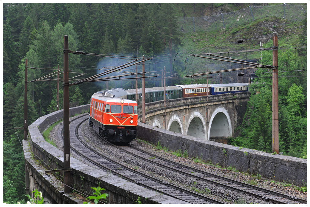 2050 009 und 2050 004 mit ihrem Sonderzug SE 14743 von Wien Fjb nach Mürzzuschlag am 10.6.2012 auf der Kalten Rinne. (Version 1)