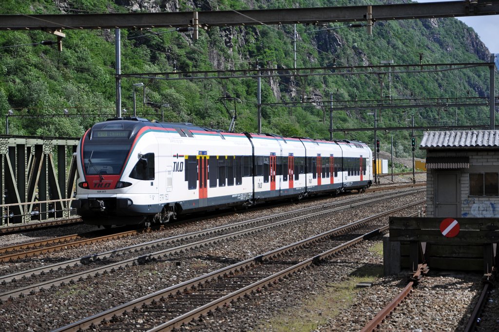 SBB - Triebzug RABe 523 016-9 als Regio unterwegs am Lac Leman bem Schloss Chillon am 20.05.2012