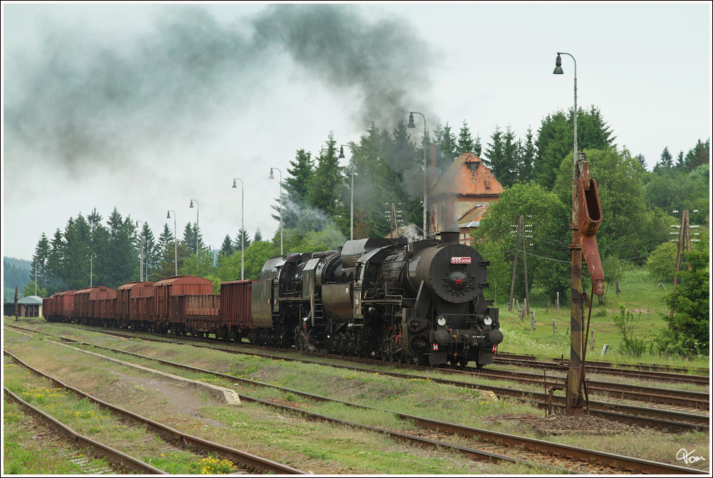 Am 3. Tag der Kindertage rund um Vrútky, gab es einen Fotogüterzug, welcher mit den beiden Dampfloks 555 3008 & 556 036 als Sv 31219 von Vrútky nach Kremnické Bane unterwegs war.