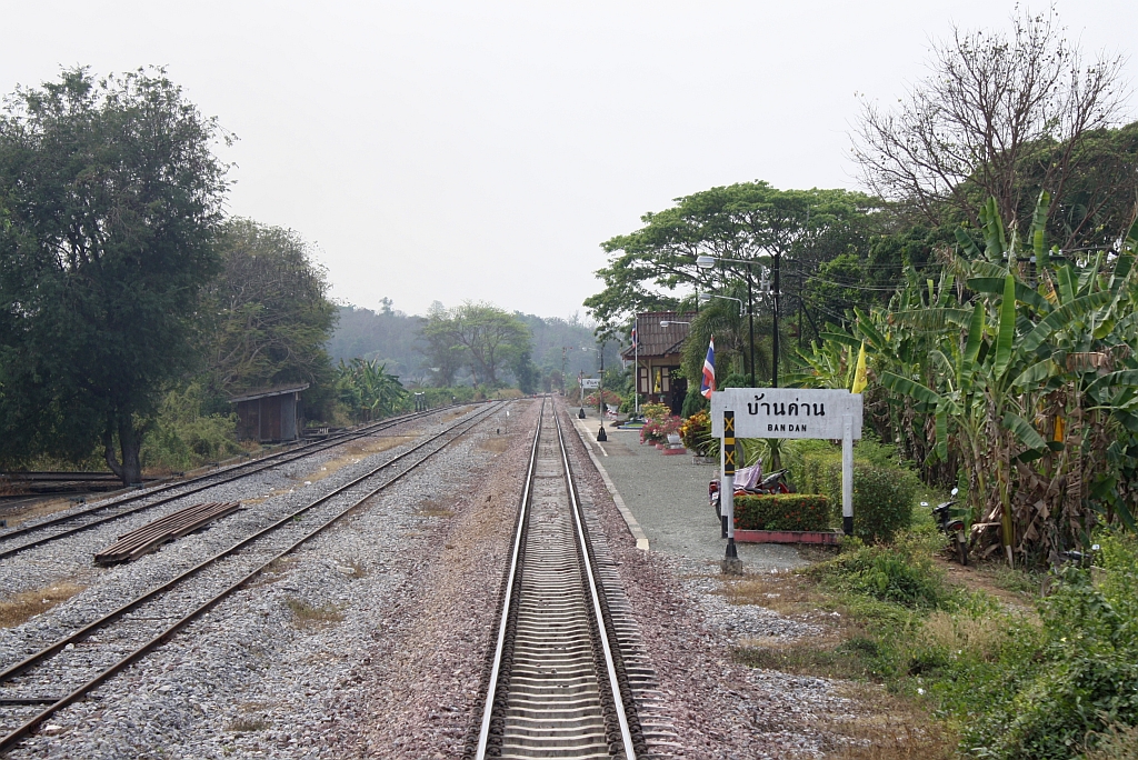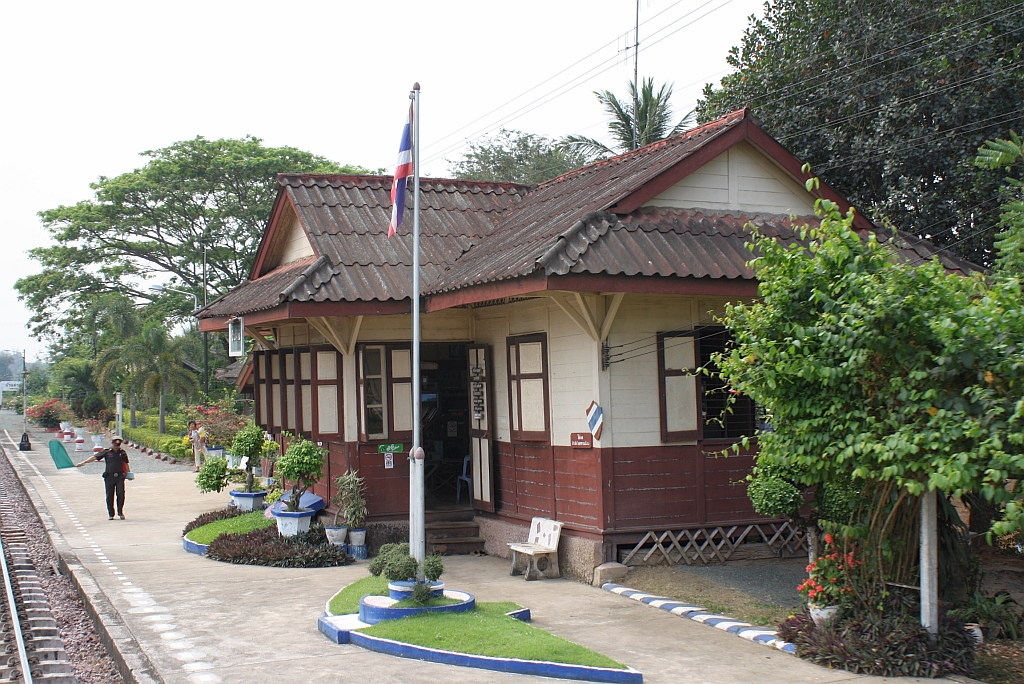 Aufnahmsgebäude des Bf. Ban Dan, Blickrichtung Bangkok, am 15.März 2012.
