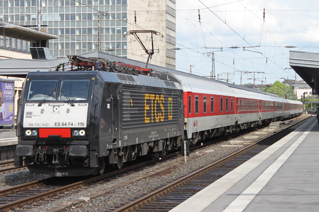 ES 64 F4-115 zog am 20.5.12 einen leeren Autoreisezug zur Bereitstellung nach Düsseldorf Hbf durch den Essener Hbf.Gruß an den Tf!