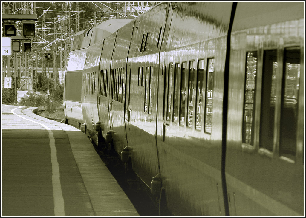 Unterwegs am Rheinufer ist dieser IC der gleich Remagen erreicht. Einfach mal den
