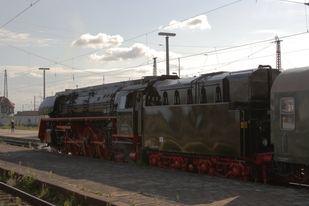 Da der angekündigte Dampf-Güterzug zu den 4. Babraer Dampftagen leider nicht zusammengestellt werden konnte, sprang 50 3501 mit ein paar Personenwagen ein und absolvierte noch mal eine Fahrt von Bebra nach Sontra und zurück. Hier wieder beim einlaufen in Bebra., Aufgenommen am 28.04.2012.