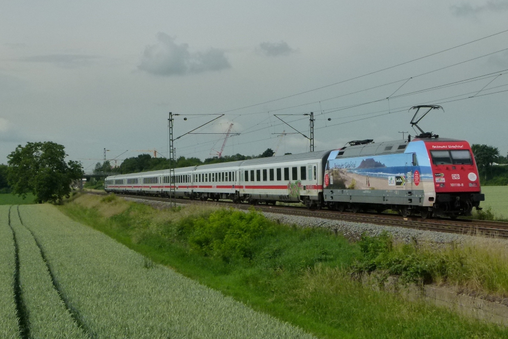 101 076 durchfuhr mit dem IC 2184 Hannover-Binz,am 09.Juni 2012,die Station Teschenhagen.