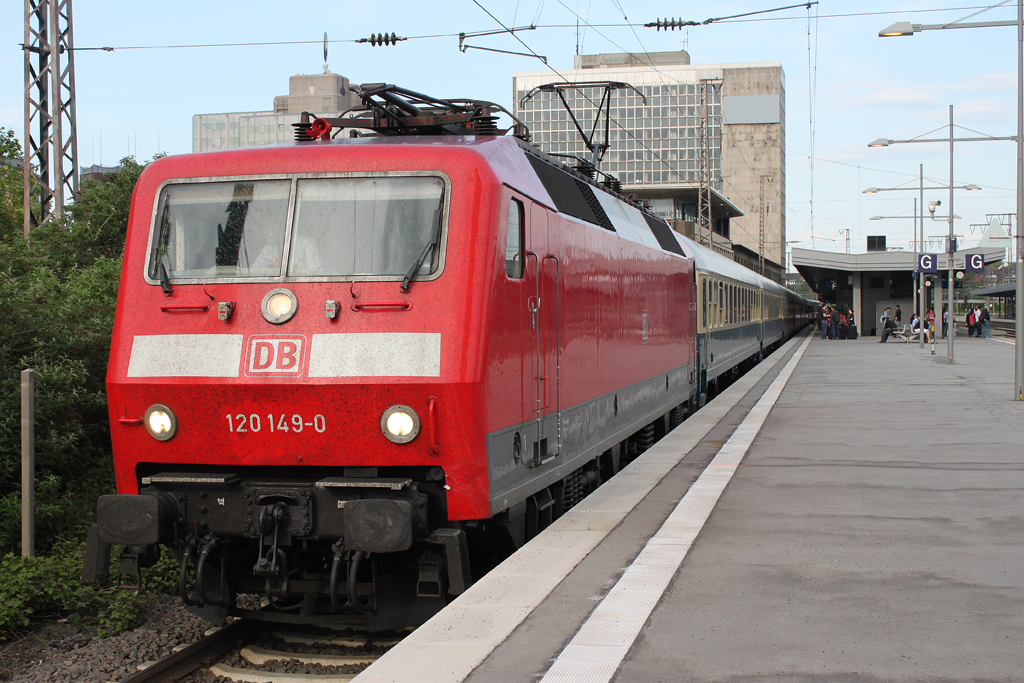 Die 120 106 mit dem IC Königsee am 08.04.2012 bei der Durchfahrt am Heimeranplatz (München).