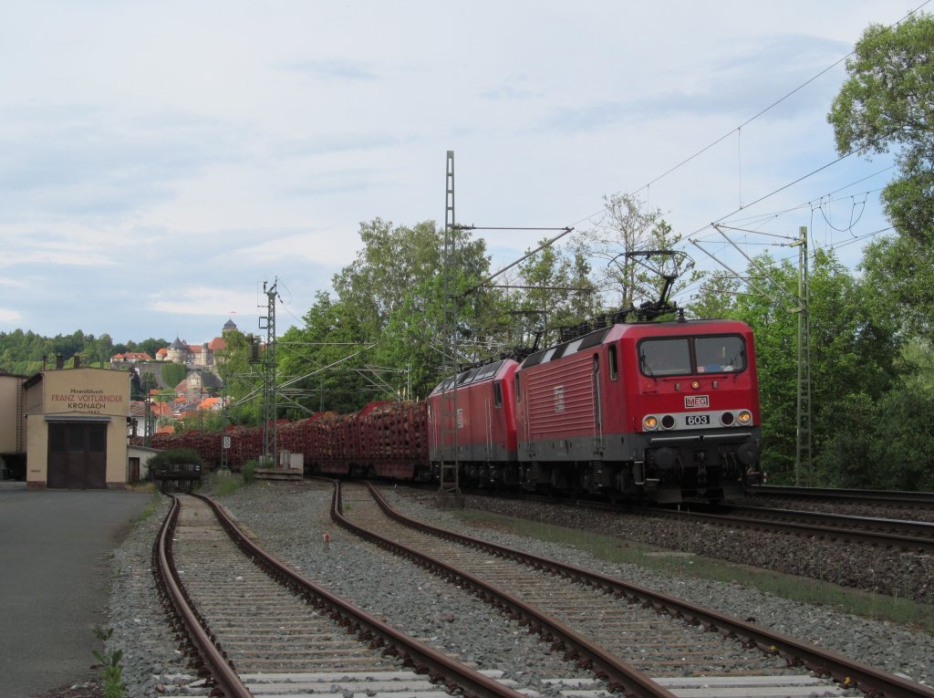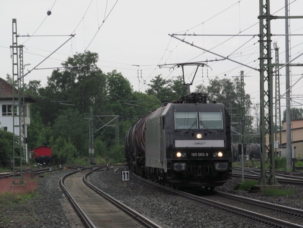 185 565-9 der MRCE zieht am 13. Juni 2012 einen Kesselwagenzug durch Kronach.