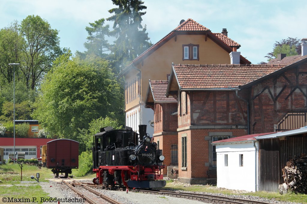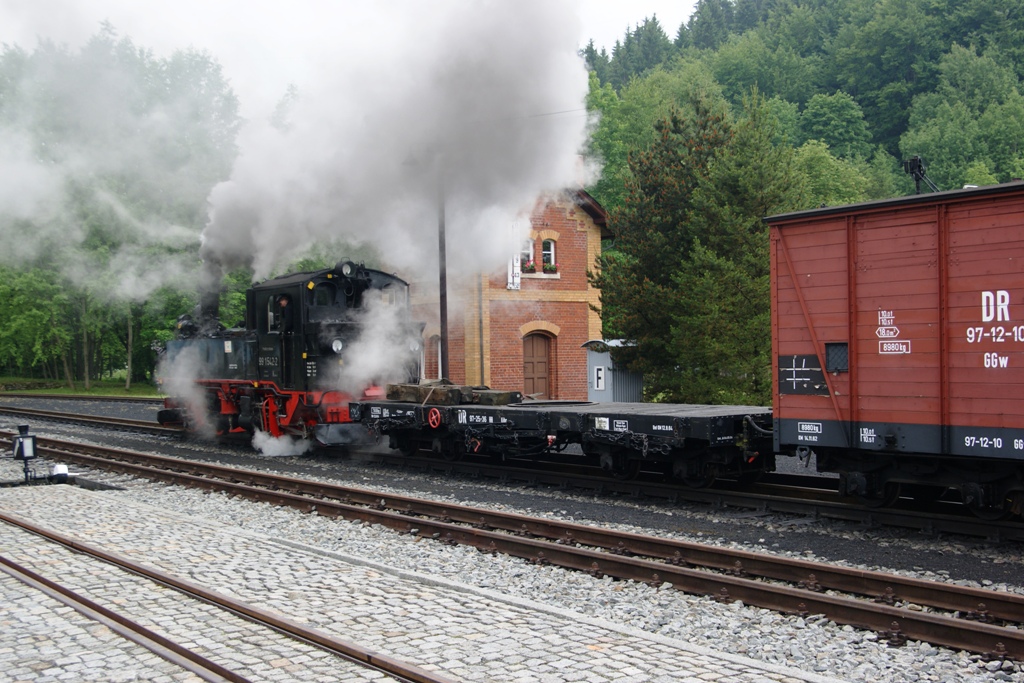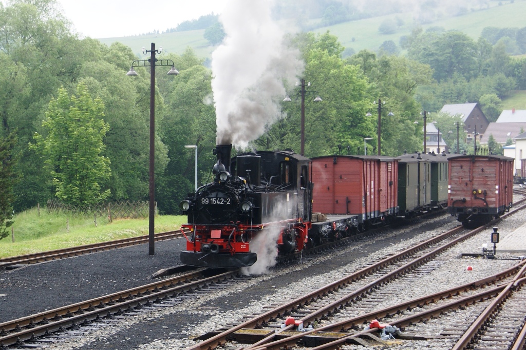 99 1542-2 im Bf Steinbach, beim zusammenstellen des GmP nach Jöhstadt. Aufgenommen am 01.06.2012.