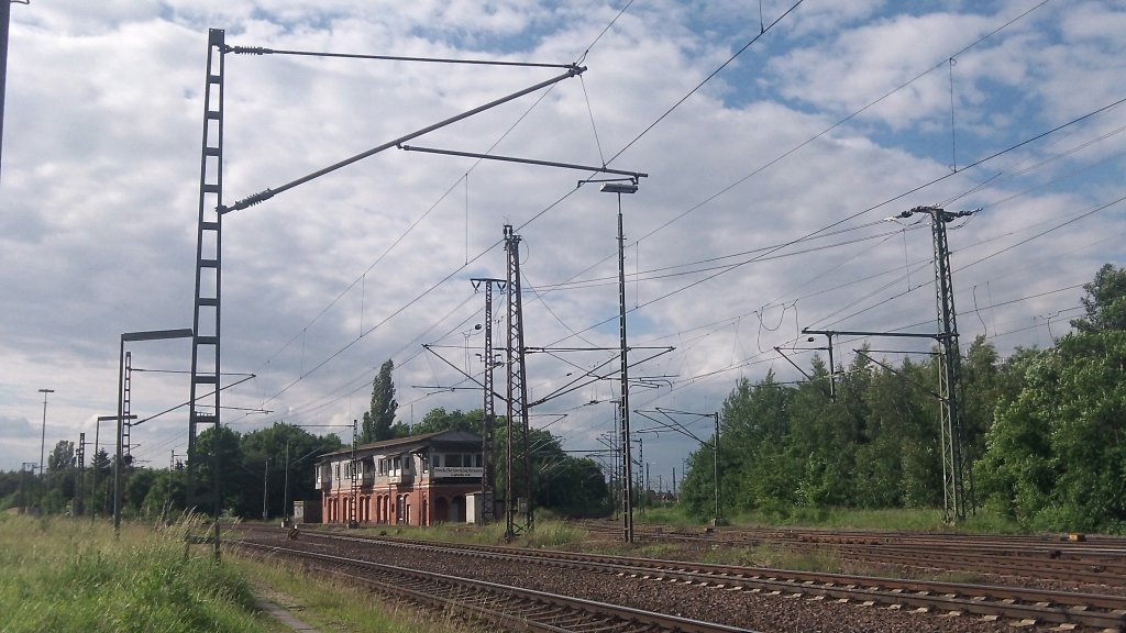 Lehrte, mit alten Stellwerk am 09.06.2012.