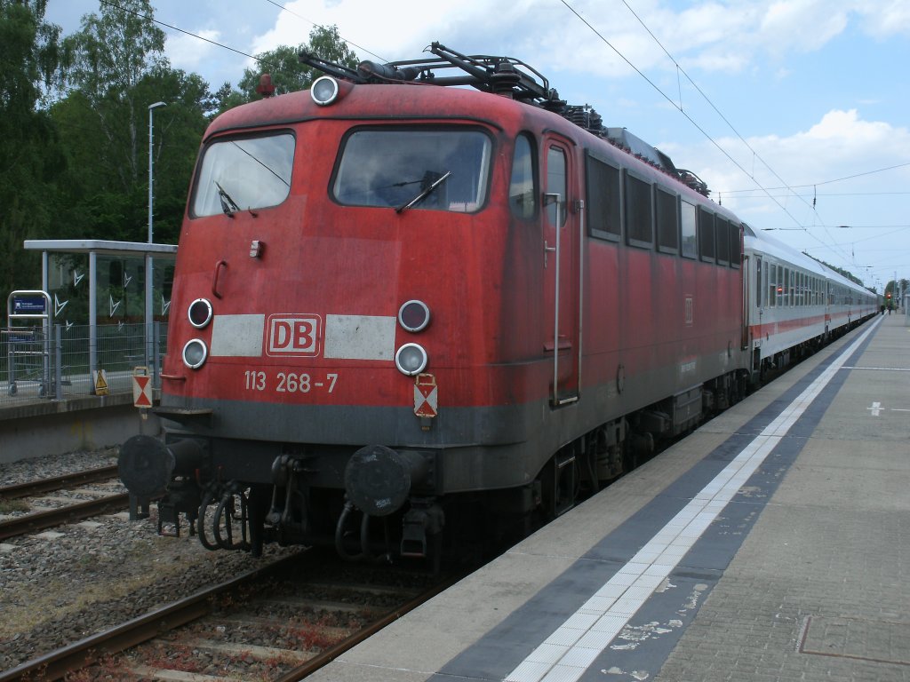 Mit bereits angebrachten Schlußscheiben stand 113 268,am 09.Juni 2012,zur Rückfahrt,als Schlußlok,nach Stralsund,in Binz.