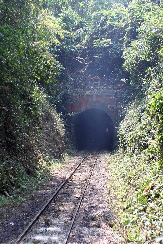 Nordportal des Pang Tup Khop Tunnel am 15.März 2012. Der am 11.Jänner 1909 fertiggestellte Pang Tup Khop Tunnel liegt in Strecken-Km. 513,72 bis 513,84 und ist mit seinen 120,09m Länge der kürzeste Eisenbahntunnel Thailands.