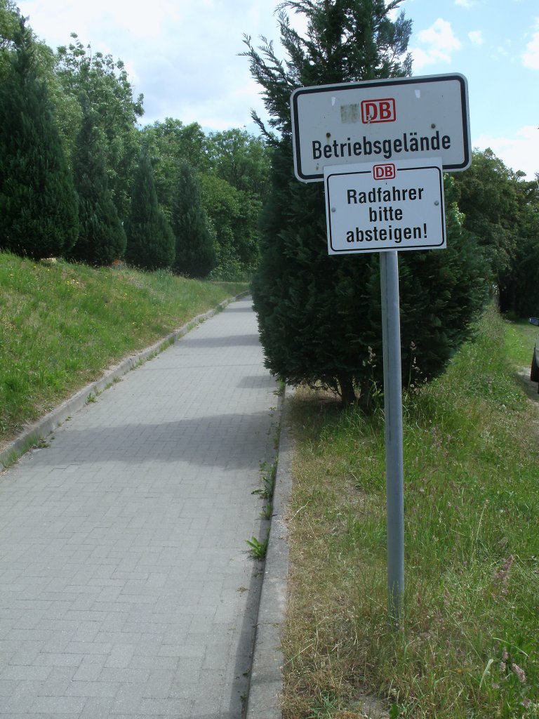 Wer zum Bahnsteig in Lauterbach Mole will muß an diesem Schild vorbei.Aufnahme vom 09.Juni 2012.