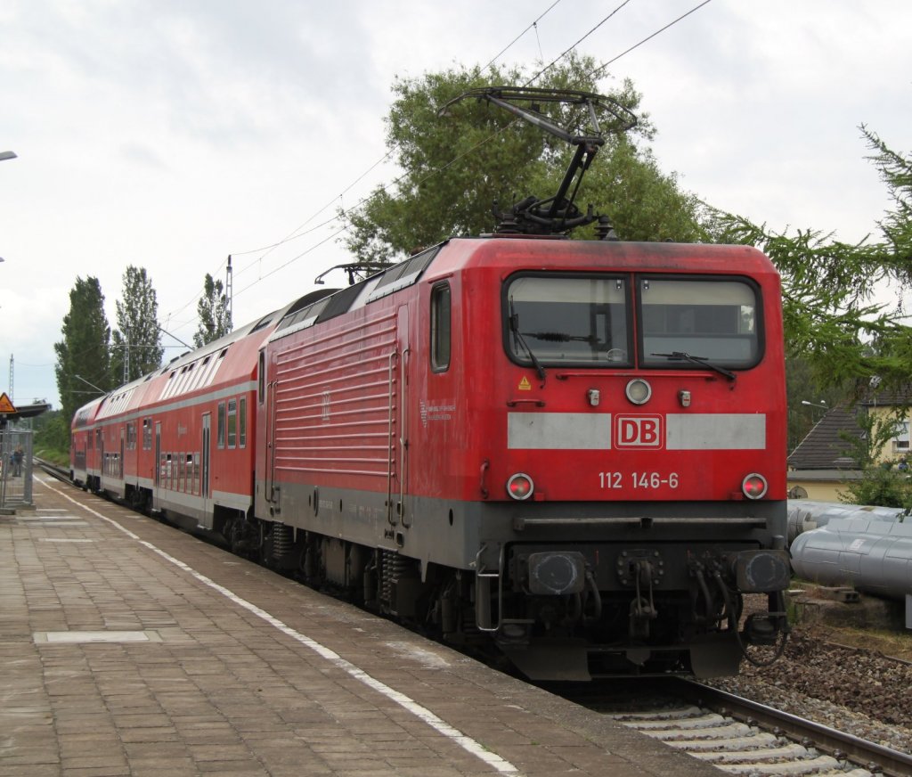 111 198-8 durchfährt am 15.06.2012 den Bahnhof von Dreieich-Buchschlag bei schönem Wetter.