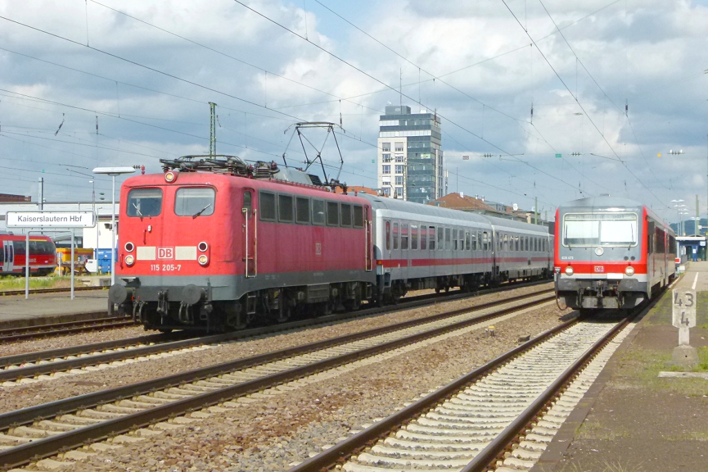 Links ein Dieseltriebwagen der Baureihe 646 der "Dreieichbahn". Rechts auf dem Bild sieht man 111 097 mit einer Regionalbahn von Langen Hbf durch den Bahnhof von Dreieich-Buchschlag brausen.