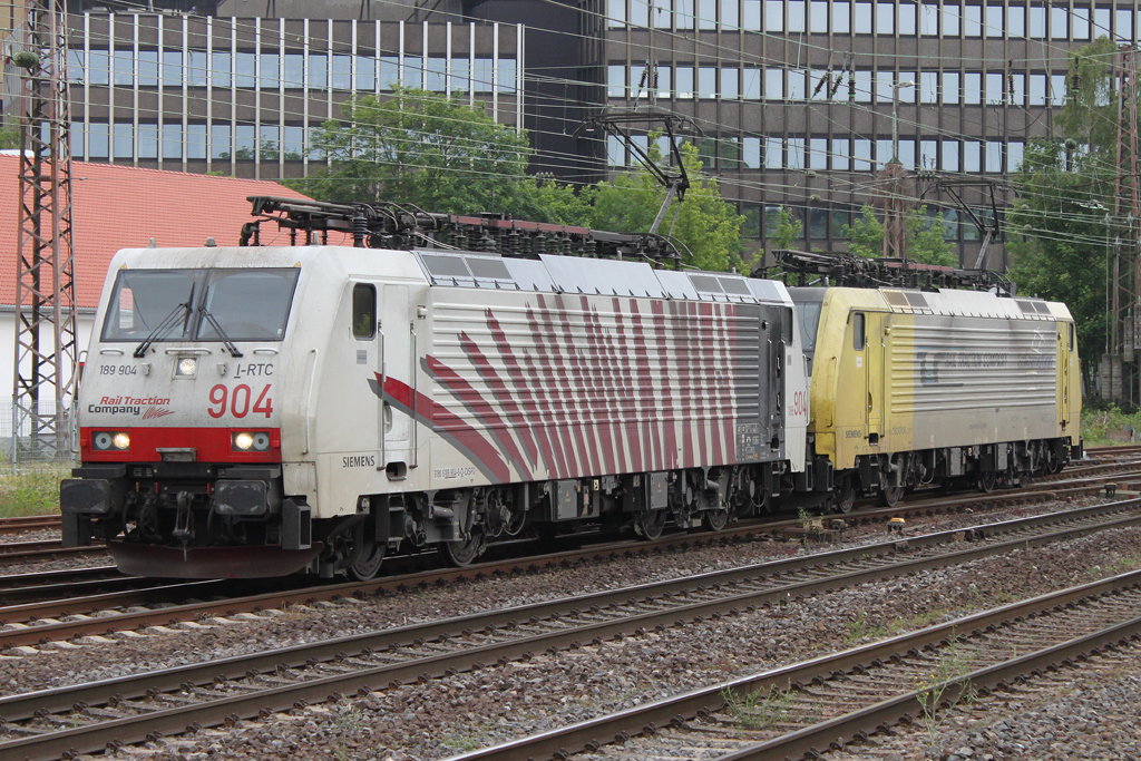189 904 und 189 903 fuhren am 1.6.12 durch Düsseldorf-Rath.Die Loks fuhren über die S6 und S3 Strecke und holten in Hattingen einen Diesellok ab.