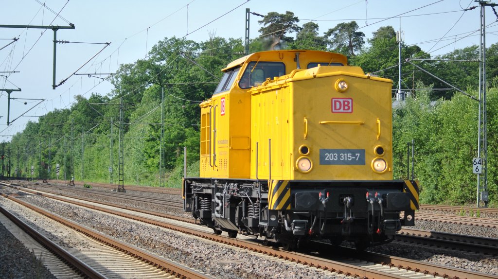 203 315-7 durchfährt am 15.06.2012 den Bahnhof von Dreieich-Buchschlag. Am Vortag führ sie noch mit dem Gefahren-Trainingszug in die andere Richtung.