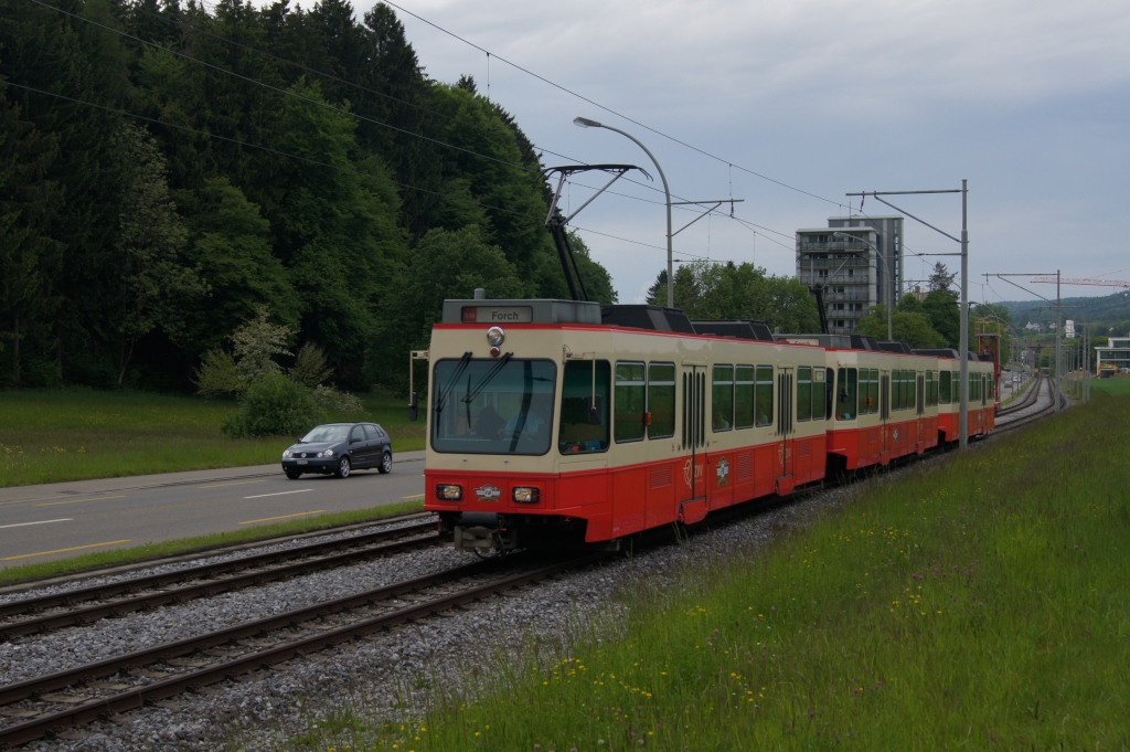 Tango mit der Betriebsnummer 165 kurz nach der Haltestelle Heiligholz auf der Linie 11. Die Aufnahme stammt vom 16.06.2012.
