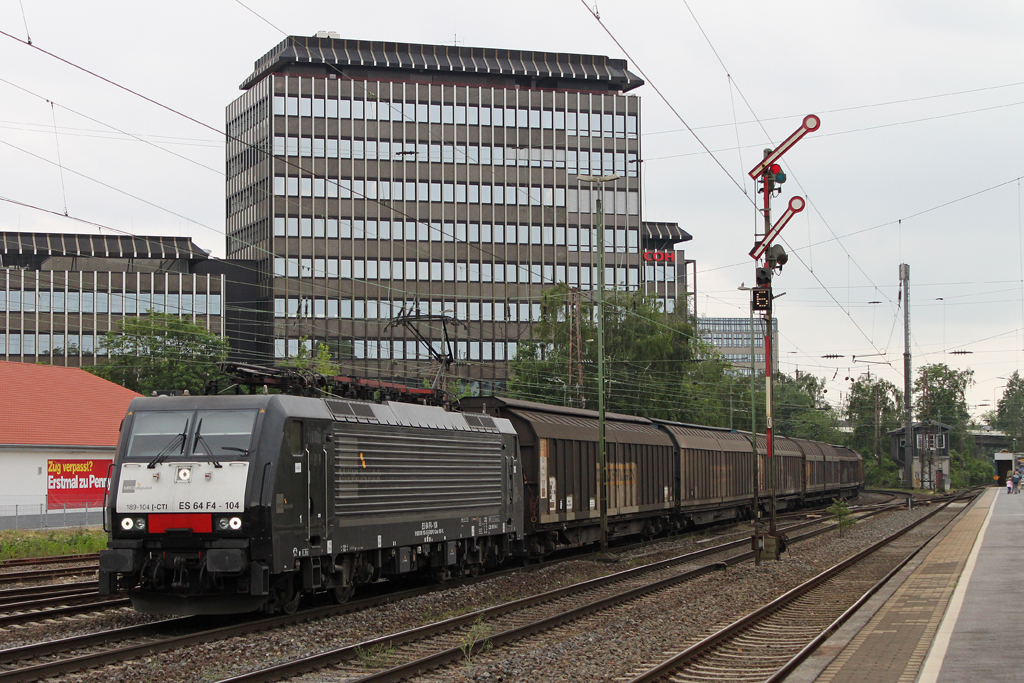 ES 64 F4-104 zog am 1.6.12 einen Papierzug durch Düsseldorf-Rath.