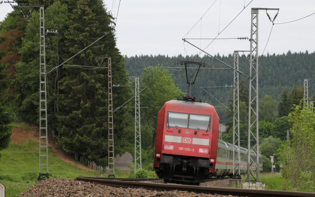 Hier 101 087-5 mit IC148 von Berlin Ostbahnhof nach Bad Bentheim, bei der Ausfahrt am 16.6.2012 aus Berlin Hbf.