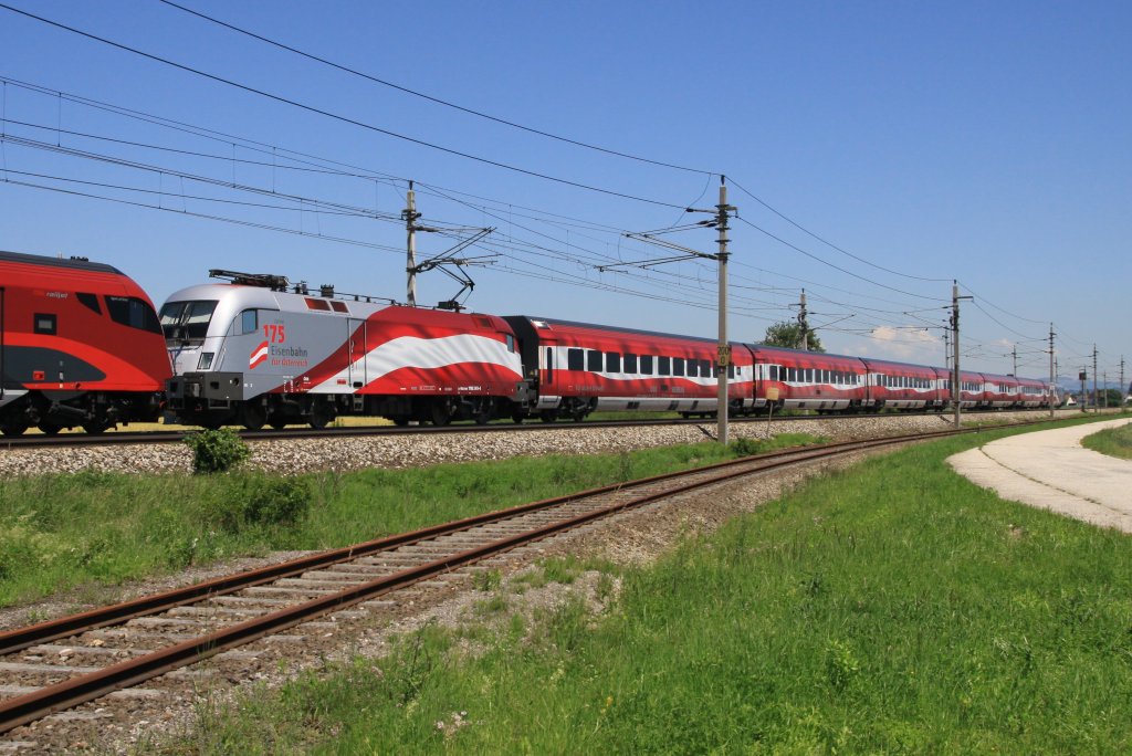 1116 280 mit einem Orient-Express nach Wien am 25.04.2009 unterwegs bei Seekirchen am Wallersee.