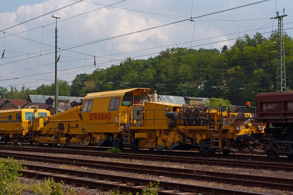 Diverse Oberbauhilfsfahrzeuge am 15.März 2012 im Bf. Pha Khan.