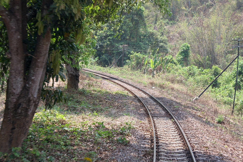 Nur mit Hilfe der Streckenkilometrierung lässt sich die Lage der aufgelassenen Hst. Huai Mae Lan eruieren. Blickrichtung Bangkok, am 15.März 2012.