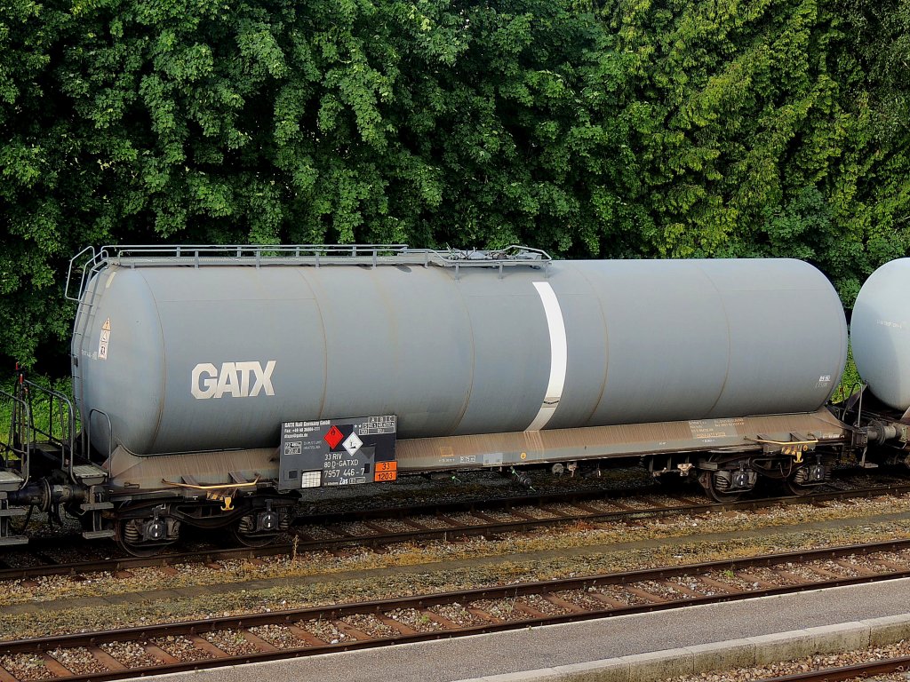 Zas 3380(D-GATXD)7957446-7 trifft lt. Gefahrentafel mit Benzin beladen, am Rieder Bahnhof ein; 120608