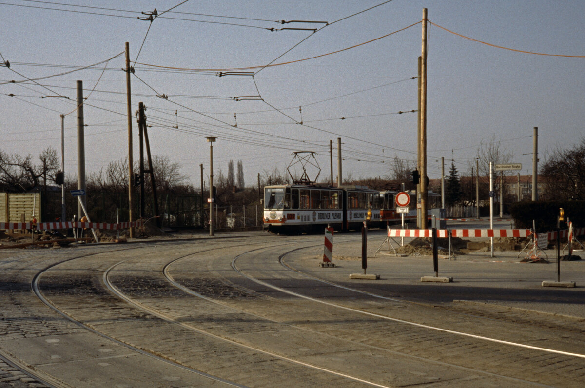 Berlin BVG SL 3 (KT4D 219 027) Prenzlauer Berg, Björnsonstraße / Bornholmer Straße (Endstelle) im April 1993. - Scan eines Diapositivs. Film: AGFA Agfachrome 200 RS. Kamera: Leica CL.