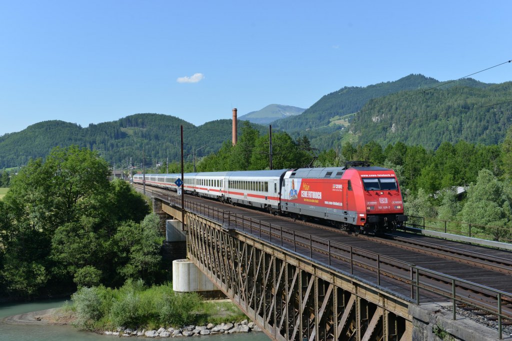 101 109 "CEWE Fotobuch" mit EC 115 von Münster Hbf nach Klagenfurt Hbf am 16.06.2012 bei der Überquerung der Salzach in Golling-Abtenau.