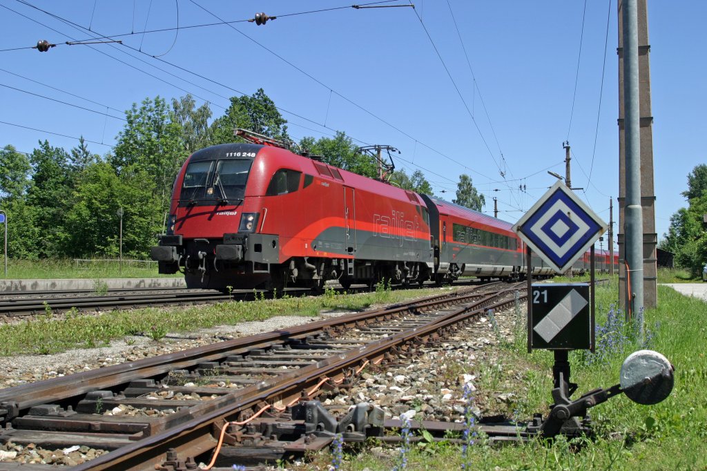 1116 208 als RJ 162 von Budapest Keleti pu nach Zürich HB am 16.06.2012 unterwegs bei Pöndorf.