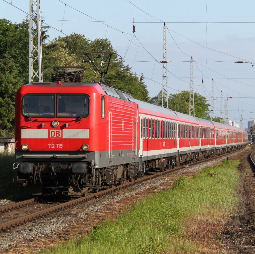 115 293-3 mit DZ 2680 von Warnemünde nach Berlin-Lichtenberg bei der Durchfahrt in Rostock-Bramow.17.06.2012