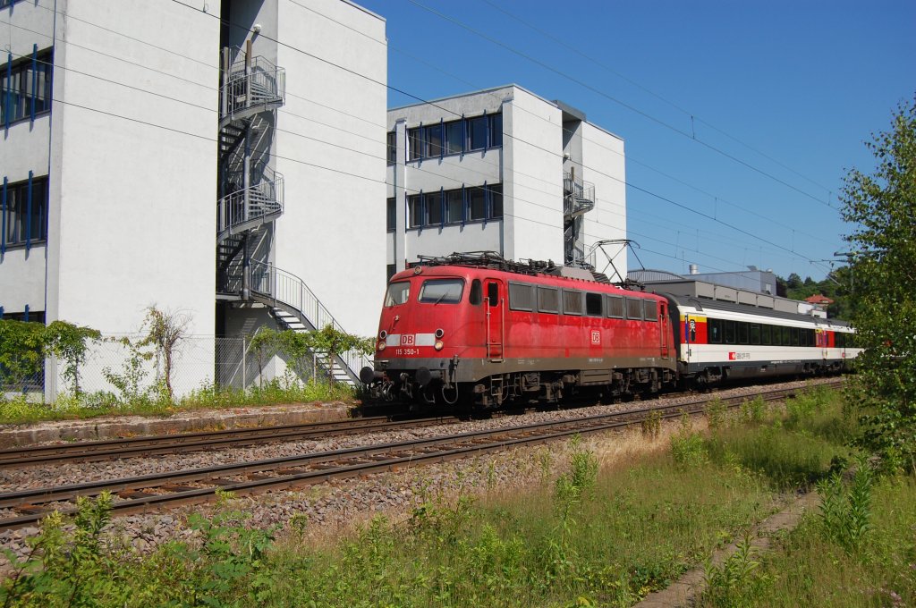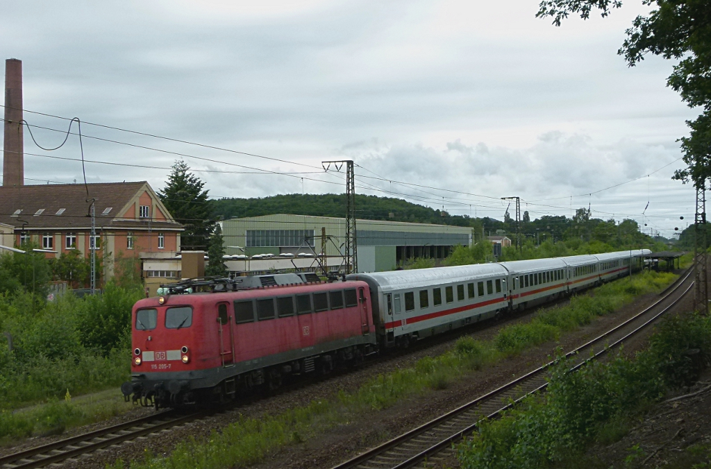 115 205-7 ist mit dem IC 2059 Saarbrücken - Frankfurt (Main) am 16.06.2012 bei Kaiserslautern Ausbesserungswerk
