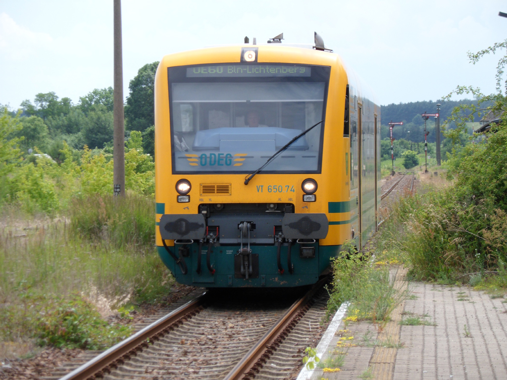 16. Juni 2012 - VT 650.74 verlässt den Bahnhof Wriezen und macht sich als OE60 auf den Weg nach Bln-Lichtenberg über Eberswalde Hbf.