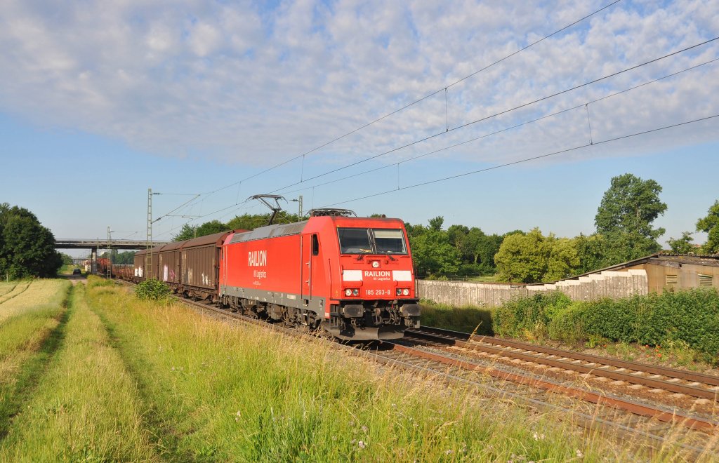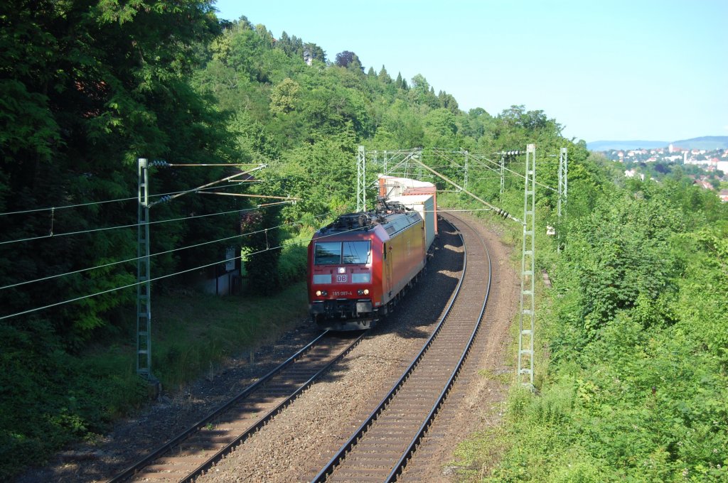 BR 185 087-4 fährt am 17. Juni 2012 als Güterzug über die Gäubahn-Trasse zwischen Stuttgart West und Stuttgart-Vaihingen