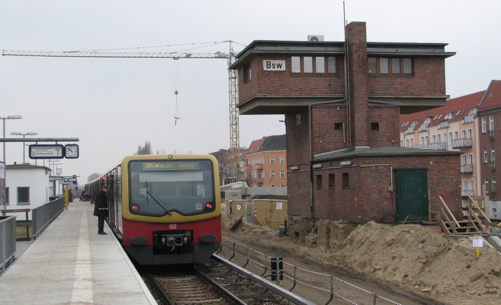 10.03.10 , Baumschulenweg ; das Stw seht nicht mehr auf einem Bahnsteig, wegen der neuen Bahnsteige Richtung Stadt und Süden. Der Zug fuhr nach Schönefeld