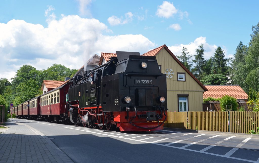 99 7239 durchfährt mit einem Personenzug vom Brocken kommend am 09.06.12 die Ortschaft Wernigerode Richtung Bahnhof.