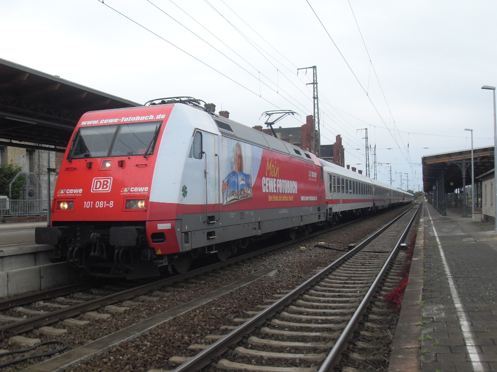 101 081-8 "Cewe-Fotobuch" mit dem IC 1925 von Berlin Südkreuz nach Köln Hbf in Rathenow. 17.06.2012