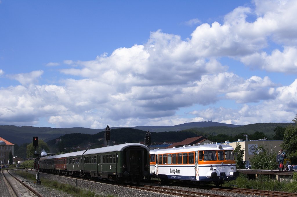 Dieser Triebwagen der Museumsbahn Bruchhausen-Vilsen wurde am 09.06.12 zum Jubiläum der Harzer Schmalspurbahnen für Sonderfahrten eingesetzt. Hier durchfährt er ein Waldstück in Wernigerode Richtung Bahnhof.