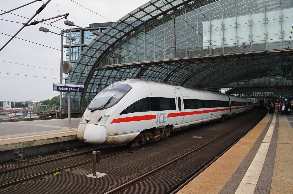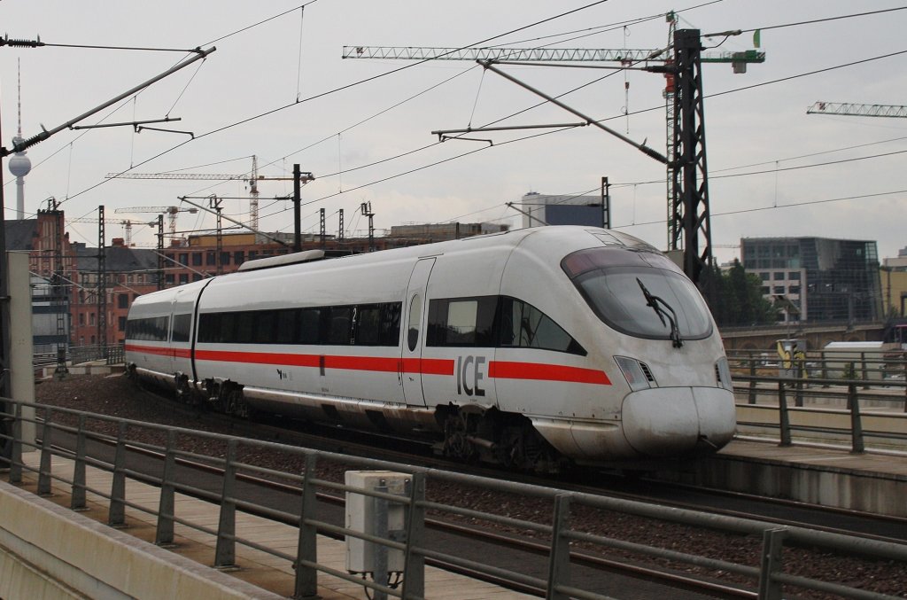Hier 808 003-2 "Cottbus/Chóśebuz" als ICE650 von Berlin Ostbahnhof nach Köln Hbf. mit 808 017-8 "Bergen auf Rügen" als ICE640 von Berlin Ostbahnhof nach Düsseldorf Hbf., dieser Triebzug stand am 16.6.2012 in Berlin Hbf.