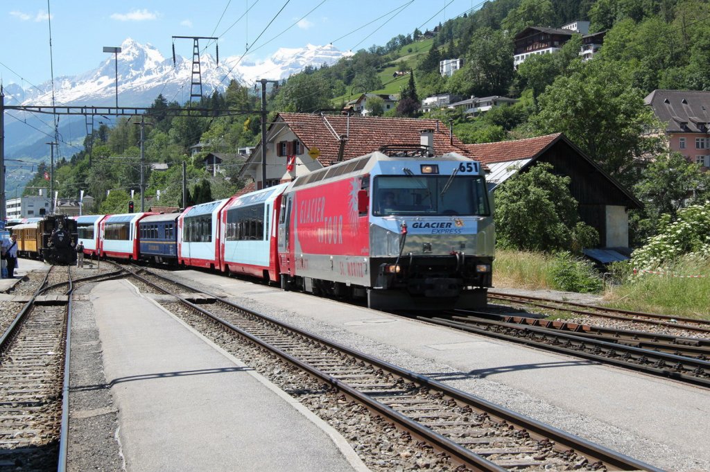 Jubiläum,100 Jahre Chur-Disentis.Der Glacier Express bei der Durchfahrt in Ilanz.16.06.12