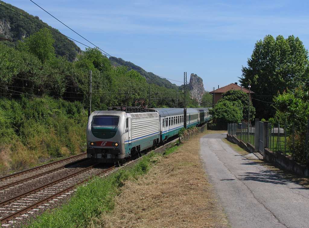 E402B.119 mit IC 674 Livorno Centrale-Milano Centrale in die Nähe von das ehemalige Bahnhof Montignoso am 11-5-2012.