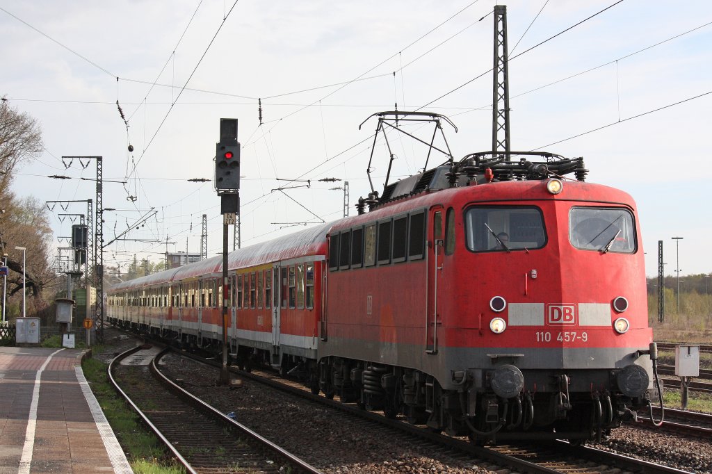 110 457 zog am 18.4.12 einen umgeleiteten RB 35 Verstärker durch Duisburg-Bissingheim.