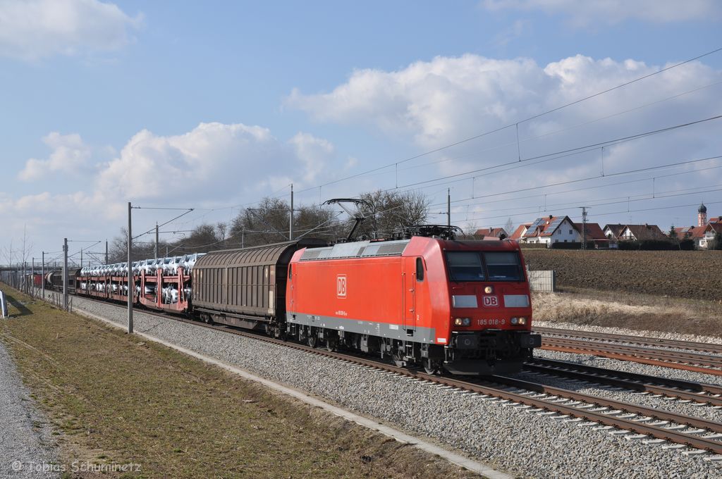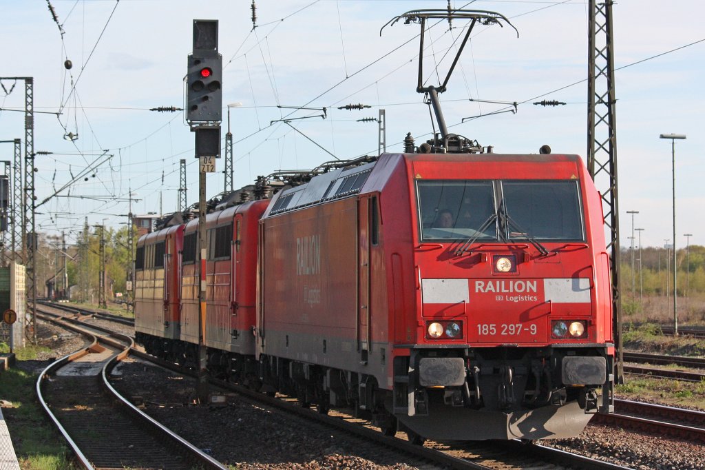 185 297 zog am 18.4.12 zwei 151er als Lokzug durch Duisburg-Bissingheim.