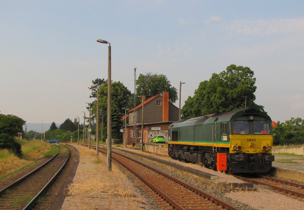 Ascendos Rail Leasing DE 63 (92 80 1266 063-7 D-HGK) wartete am 19.06.2012 im Bf Emleben auf Kesselwagen aus dem angrenzenden Tanklager, um diese dann in Richtung Berlin zu befördern.