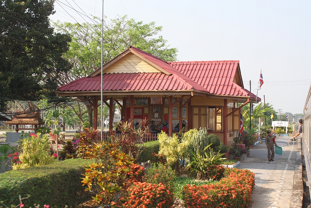 Aufnahmsgebäude des Bf. Pa Sao, Blickrichtung Chiang Mai, am 15.März 2012.