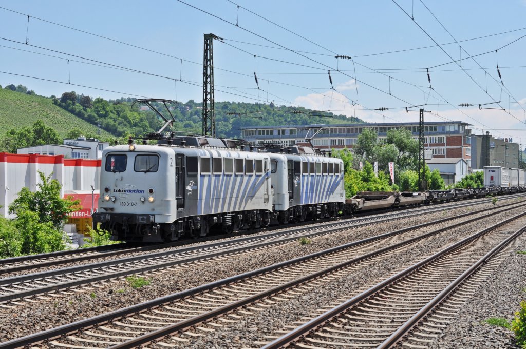 110 402 mit einem umgeleiteten RB 35 Verstärker als Parallelfahrt mit ECR 247 041 in Duisburg-Bissingheim.Aufgenommen am 19.4.12.